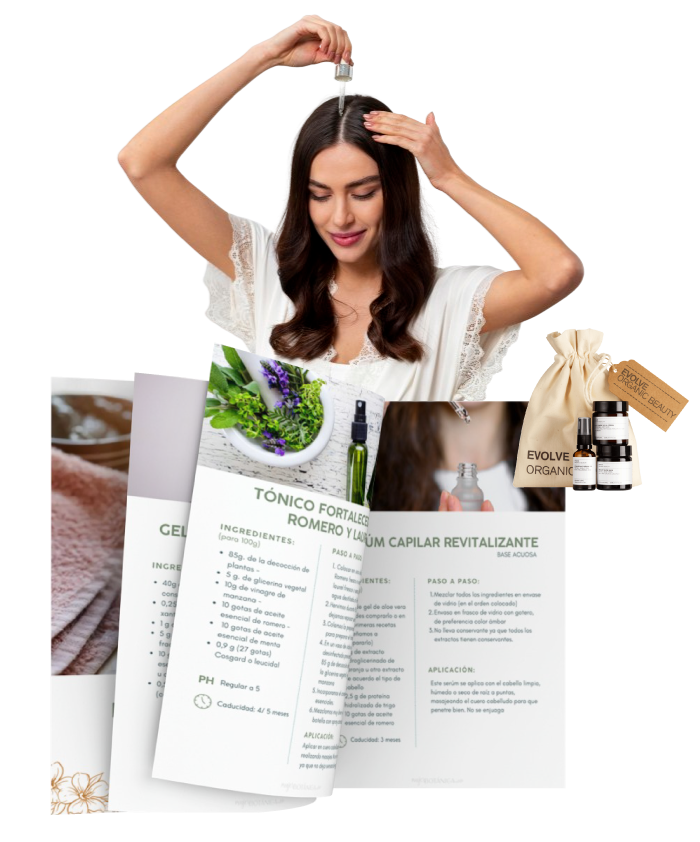 También incorpora contenido de nivel intermedio y avanzado, para que puedas progresar, dominar la formulación capilar y crear tus propios productos aunque nunca antes hayas hecho cosmética natural.