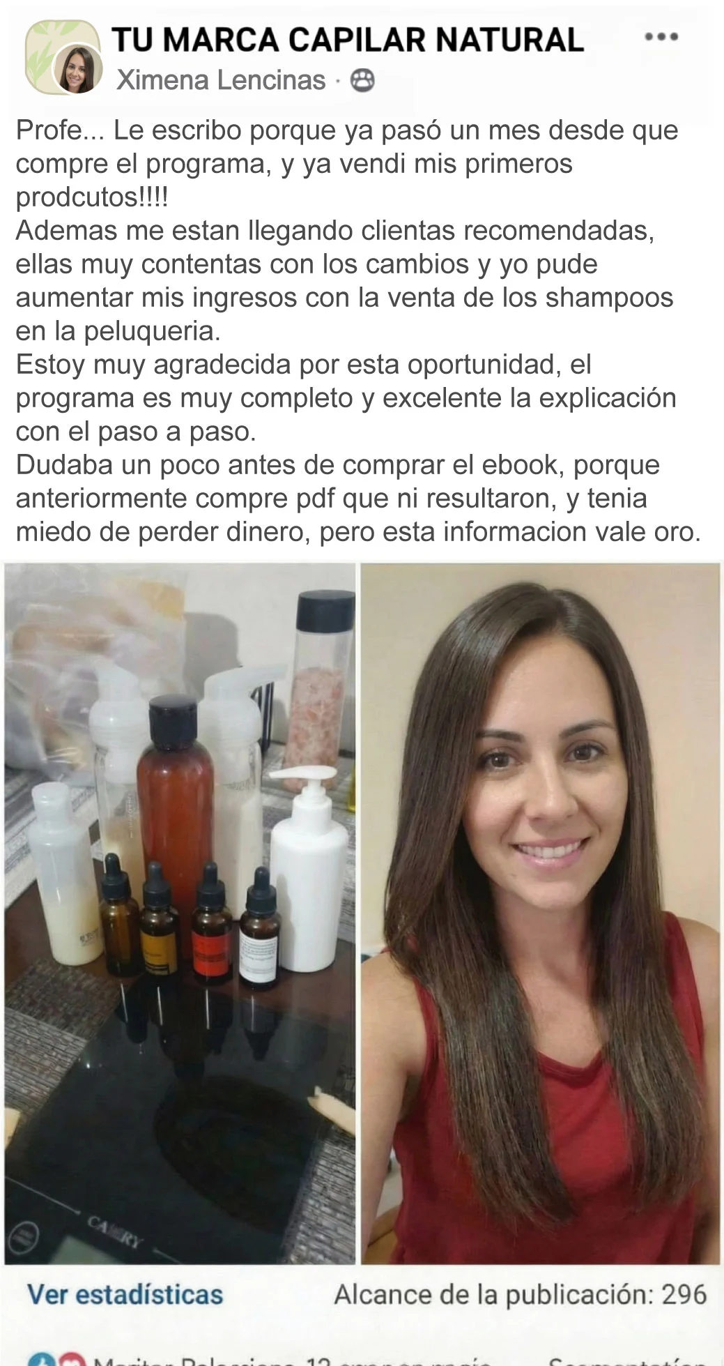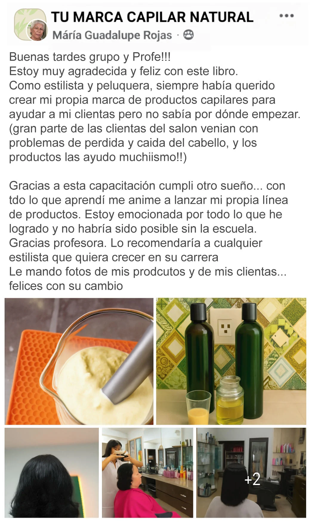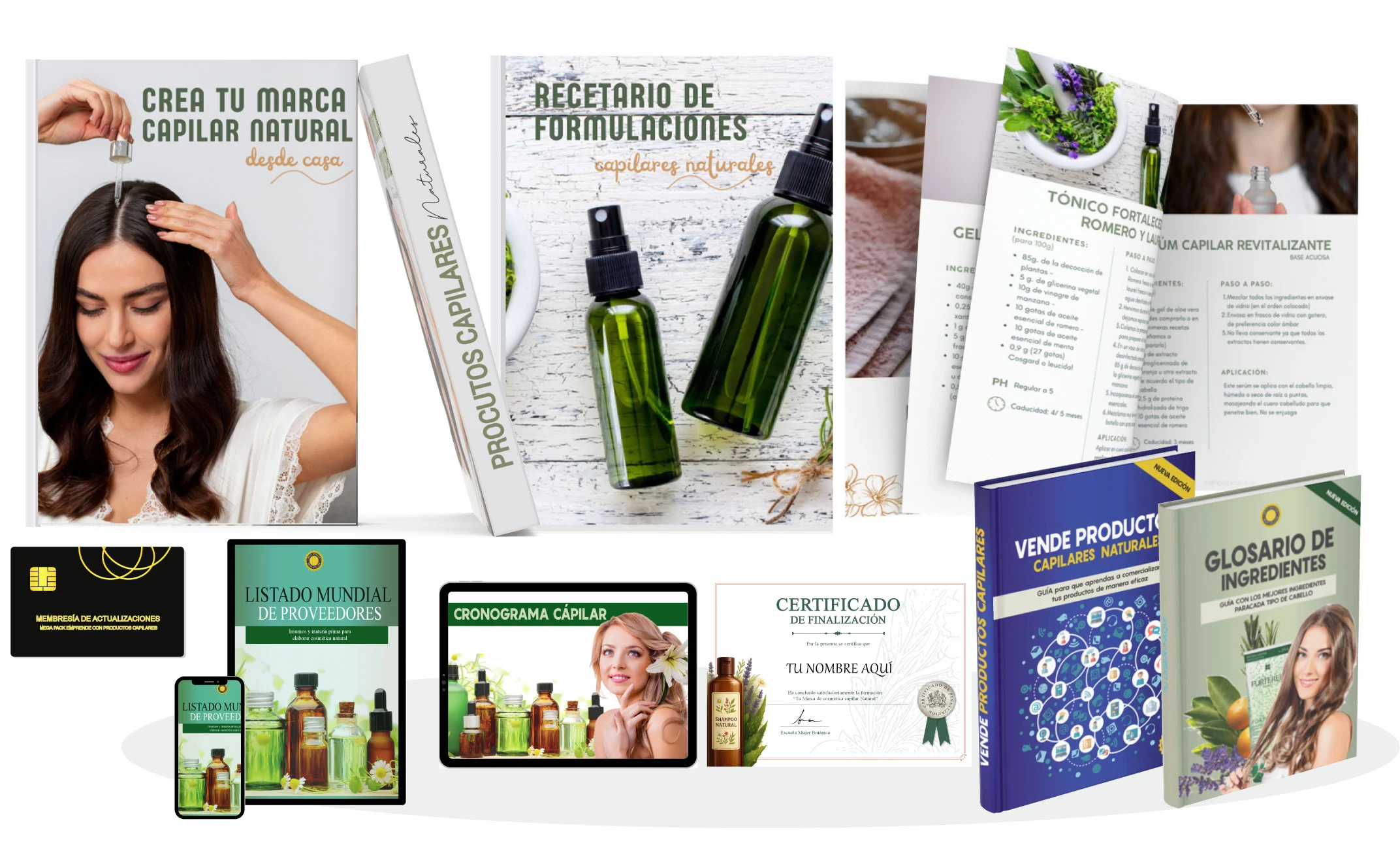 🧴 Tener tu propia línea completa de productos capilares 100% naturales, con fórmulas probadas que realmente funcionan.